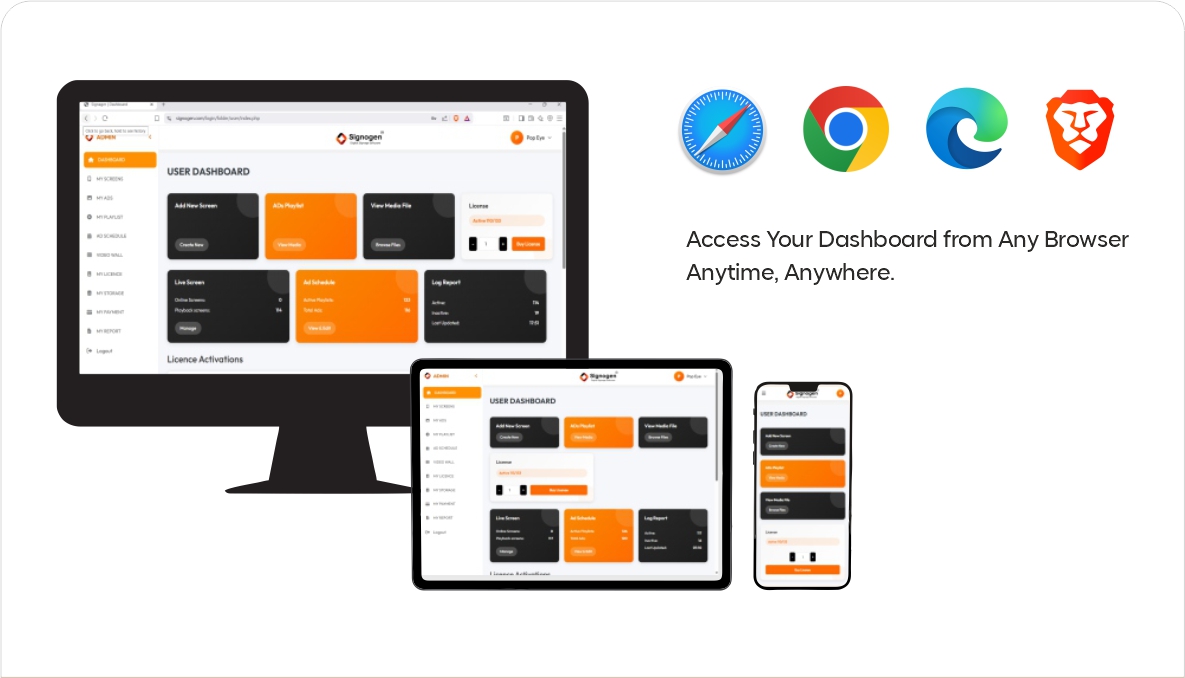 Connect Any Screen, Anywhere From Android TVs to video walls, Signogen’s advertising display software delivers perfect playback and performance across all devices.